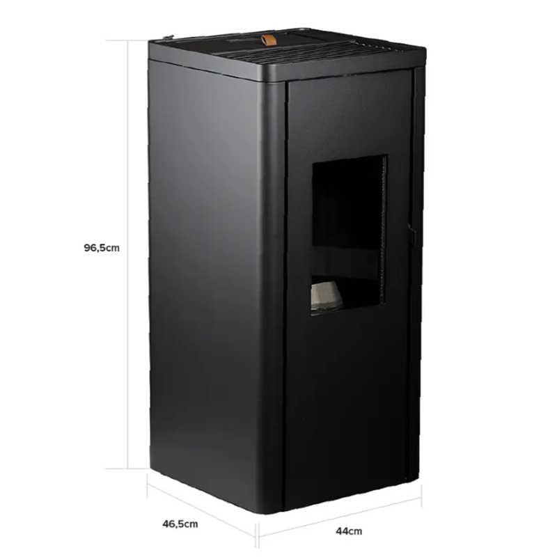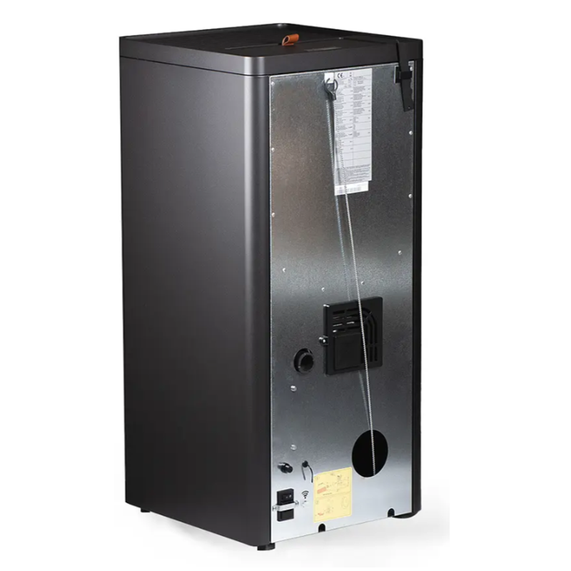 Calefactor de acero a pellet marca Centrometal (Italia).